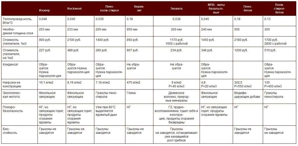 Сравнительная стоимость утепления чердачного перекрытия различными видами утеплителей
