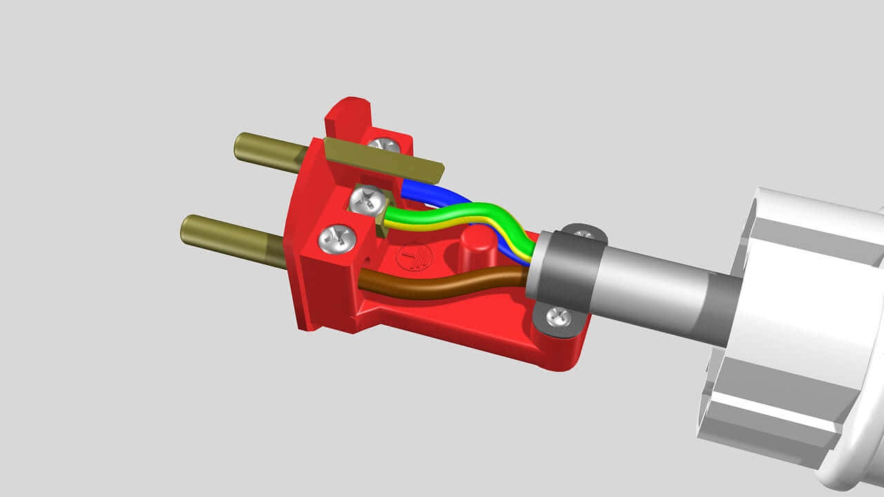 • жилы с изоляцией коричневого и синего цветов – к крайним болтовым соединениям вилки; • жилу желто-зеленого цвета – к центральному болтовому соединению вилки с маркировкой .
