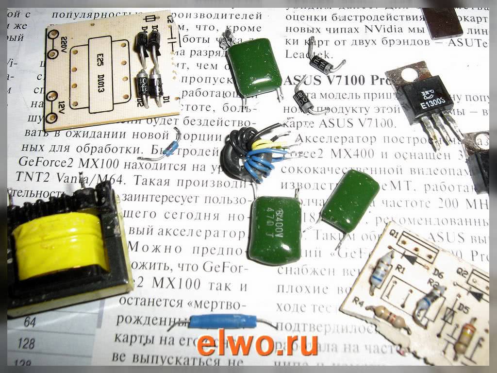 Электронный балласт можно купить в магазине или найти у себя в закромах, но самым интересным вариантом будет сборка электронного трансформатора своими руками. Собирается он довольно просто, а большинство необходимых деталей можно наковырять в сломанных блоках питания и в энергосберегающих лампах.