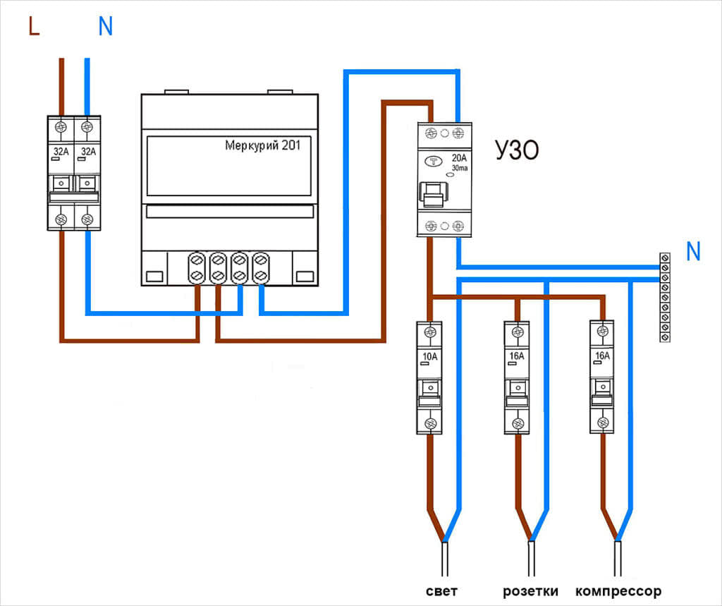 УЗО на входе удобно тем, что его можно настроить на величину тока, меньшую опасного предела (0,1 Ампер)