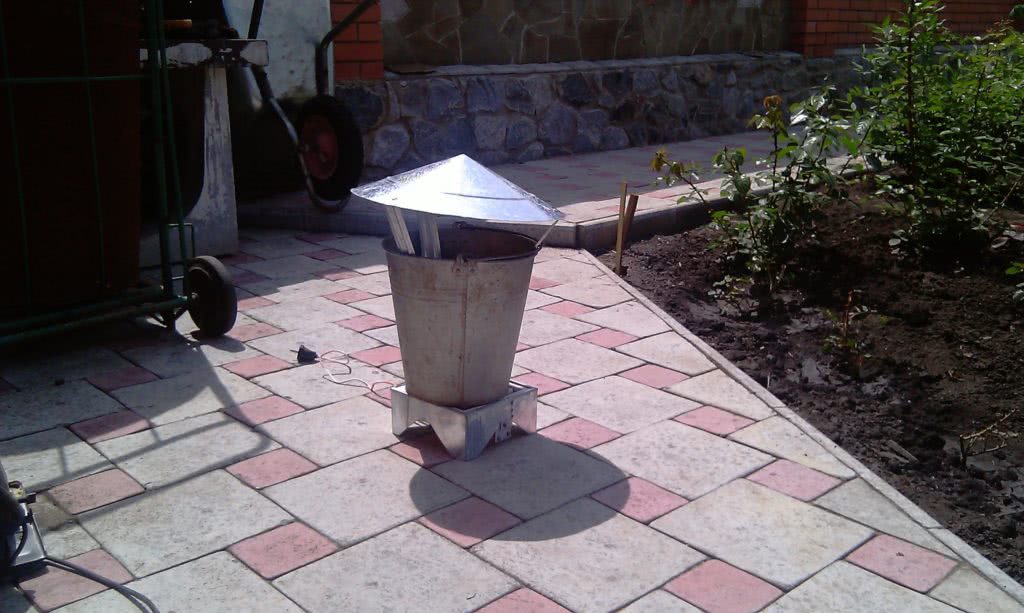 ● поверх кирпичных столбиков установите металлический ящик. Можно использовать кастрюлю или ведро;