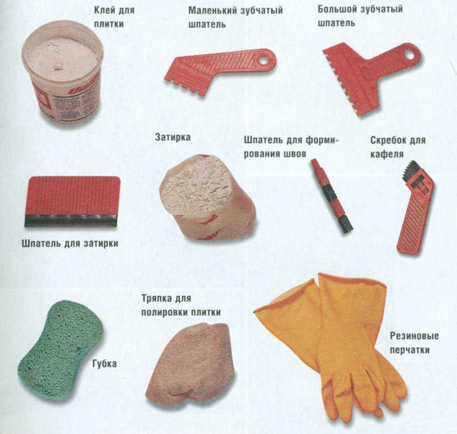 Также может понадобиться скребок для снятия засохшего материала с кафеля и тряпка.