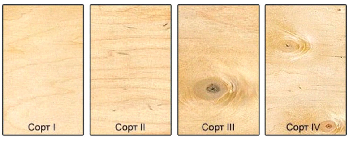 - Материал низшего (IV) сорта характеризуется низким качеством поверхности, производитель гарантирует лишь надежность клеевого соединения.