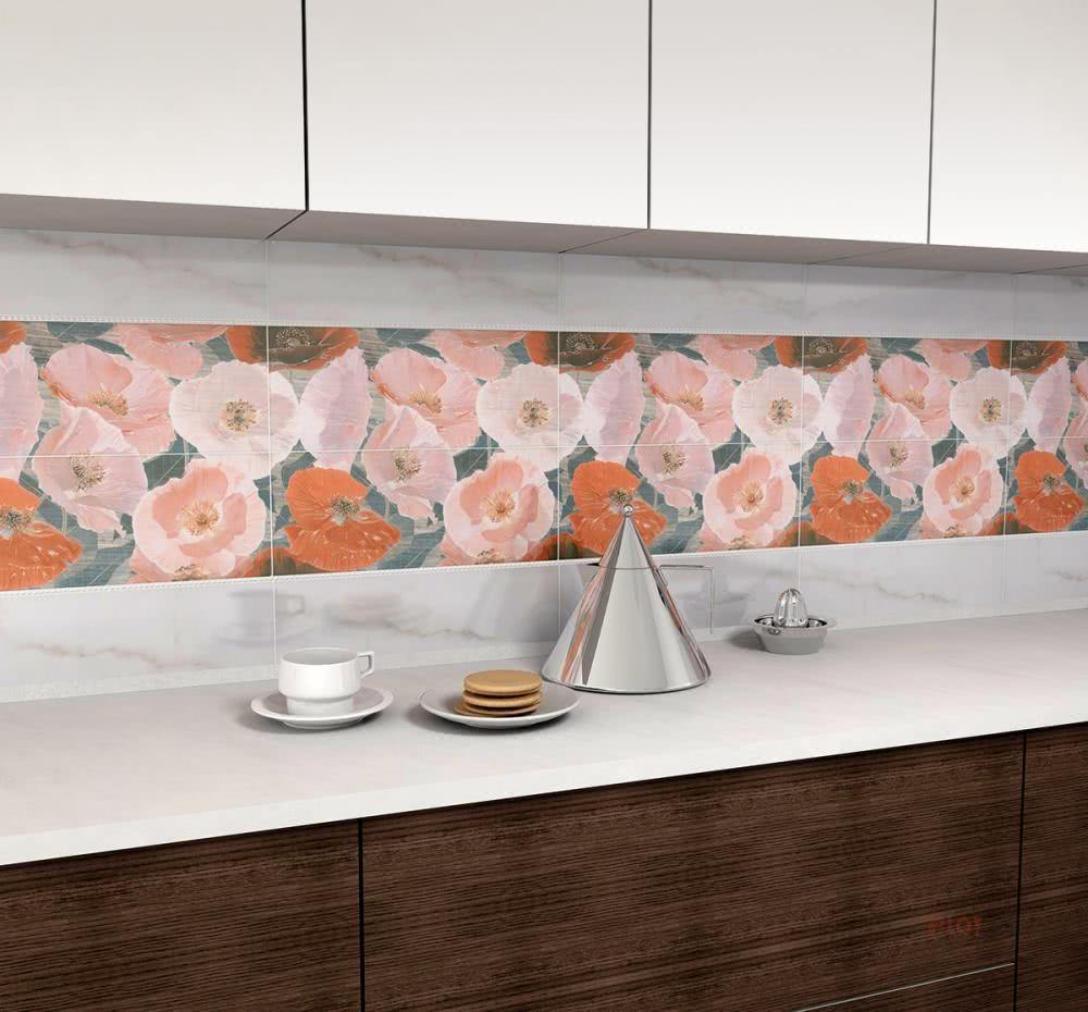Модный дизайн кухонной плитки все чаще появляется не только на стенах, но и на полу. Тем не менее, узорчатая керамика является рискованным вариантом. Мода меняется слишком быстро. В настоящее время в дизайне керамической плитки преобладают геометрические мотивы, но также в 3D-варианте. Кухонная плитка с фактурой позволяет оживить стену, которая при правильном освещении будет очень эффективной. Интересно сочетать гладкие плитки с рельефным узором — четкие, глубоко вырезанные линии дополнительно выделяются ярким цветом, что дает эффект абстрактного рисунка. Кухонная плитка может иметь восточные мотивы, характеризуясь рисунками с нечеткими линиями.