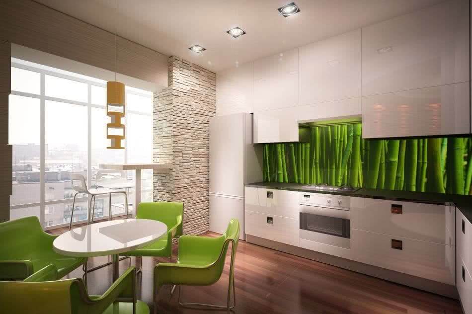Дизайн такого покрытия может быть однотонным или имитирующим фактуру других материалов. Для придания рабочей зоне яркости, используется фотопечать. Недостатком такого отделочного материала является его высокая цена и необходимость делать заказ, исходя из размеров фартука, что связано со сложностью процесса обрезки стекла.