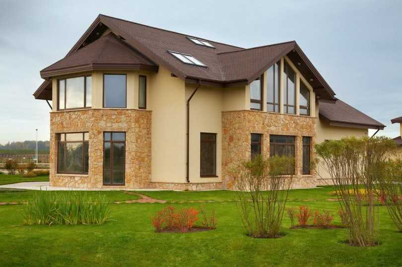 Фасад, оформленный кирпичом и штукатуркой Источник roomester.ru