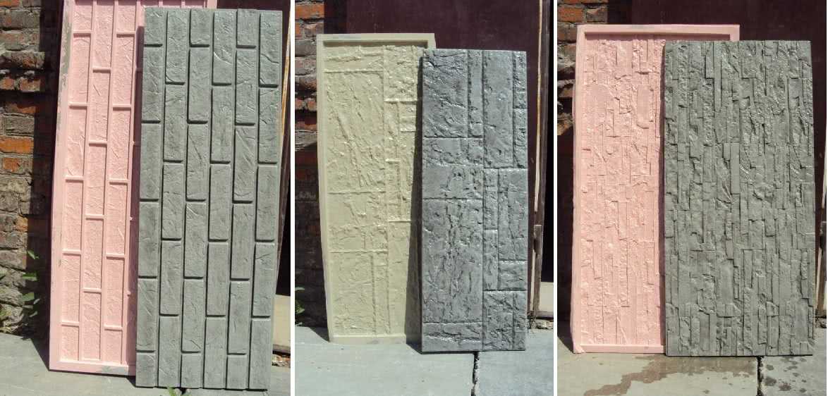 - В виде плит разного формата. В этой категории могут быть гладкие панели или имитирующие кирпичную кладку, камень и т.д. Монтируются тоже не обрешетку, но имеют свои особенности.