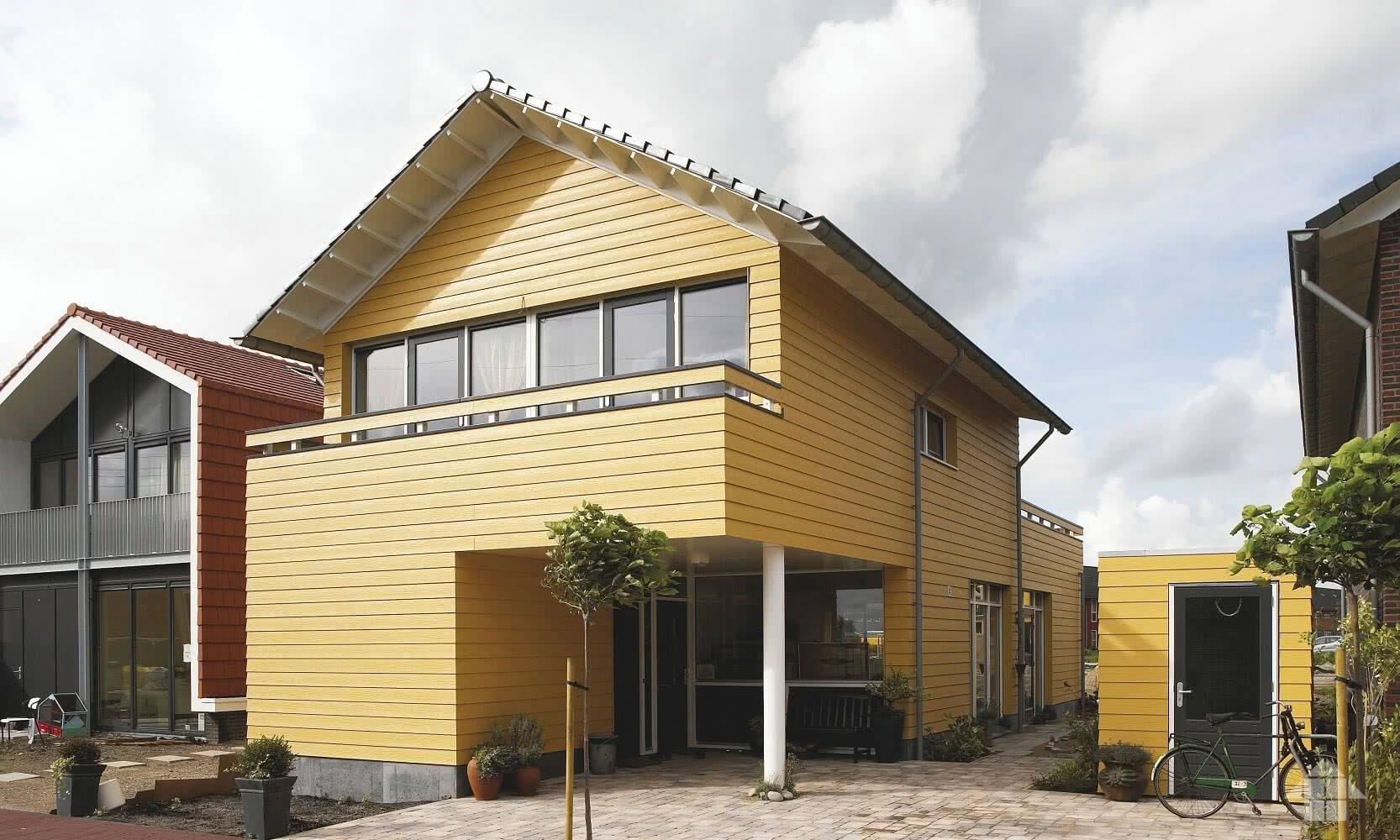 Применяется фиброцементная разновидность сайдинга в качестве отделки для придания фасаду дома привлекательного внешнего вида и одновременно для обеспечения защитных функций поверхности стен. Зачастую разрушают материалы стен различные погодные явления, такие как град, дождь, ультрафиолетовые лучи, ветер и снег.