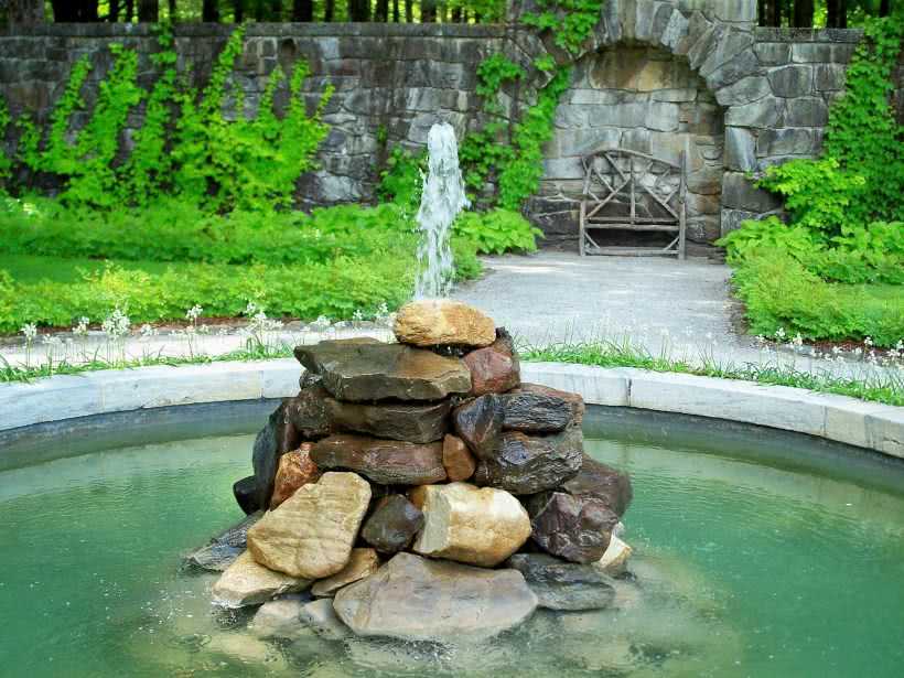 Немного сложнее решить задачу, как построить фонтан на даче с водопадом. Придется выполнить дополнительные работы, а именно: