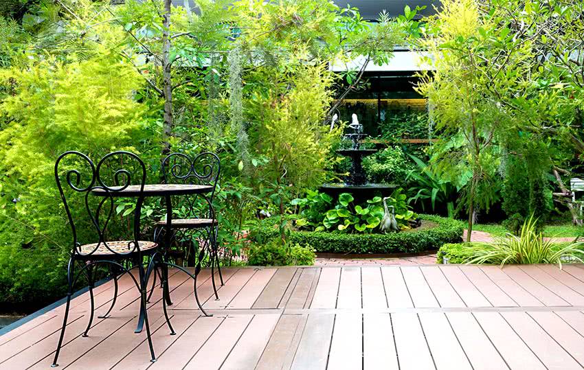 В завершении стройки фонтан декорируют, высаживая вокруг него влаголюбивые растения, устанавливая садовые скульптуры. Не забудьте оборудовать зону отдыха поблизости с удобными скамейками или гамаком.