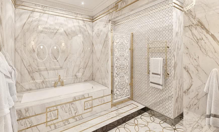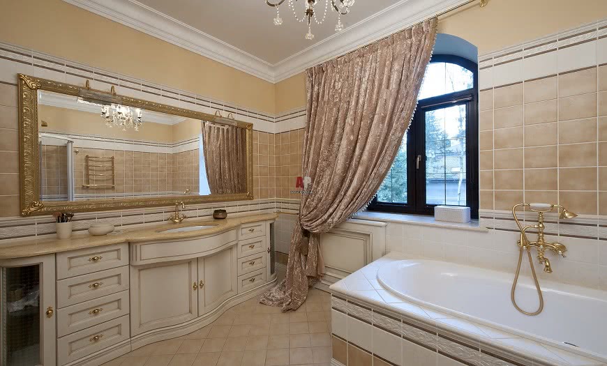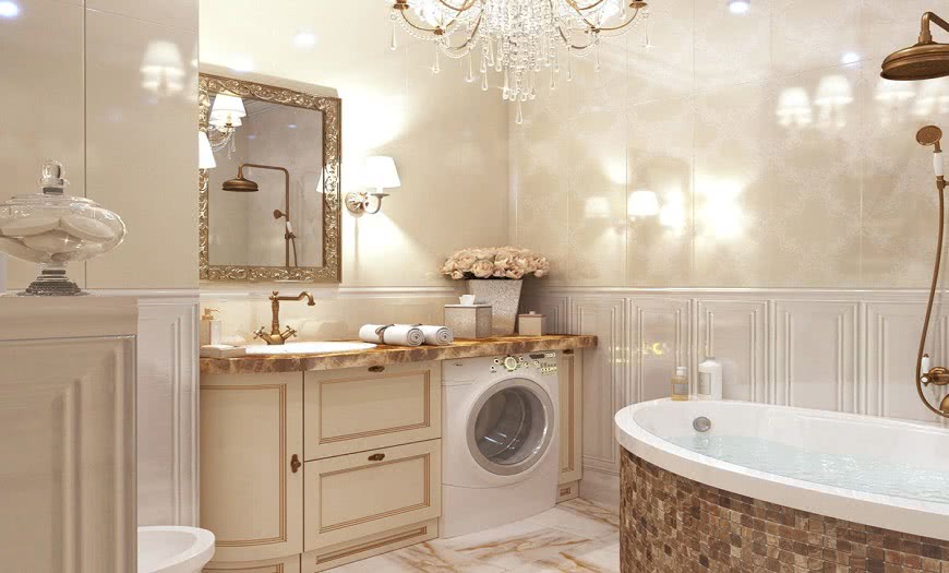 Оформление ванны в классическом стиле — недешевый выбор. Однако это оправдано возможностью преобразить интерьер даже в устаревшем помещении.