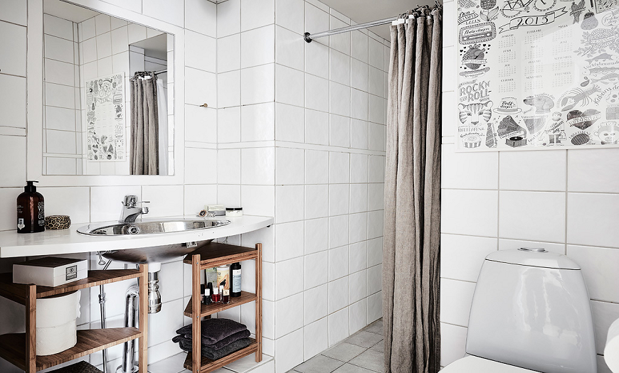 Если вы решили оставить раздельный санузел и ванную, то необходимо разместить небольшую раковину в уборной. Все трубы лучше всего закрыть декоративным коробом, а над ним можно разместить шкаф или полки. Это позволит более рационально использовать полезное пространство.