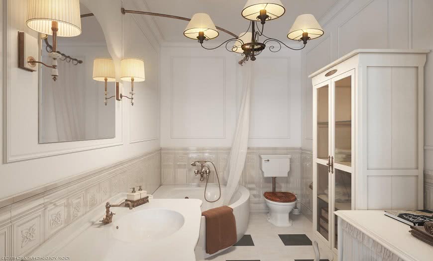 В любом случае ванная комната должна продолжать убранство всех остальных помещений.