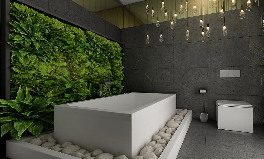 - Натуральные фактуры. Востребованы каменные и древесные акценты. В ванной можно повесить панно из морской гальки.