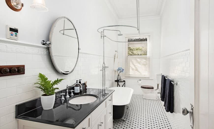 Современная ванная комната и эклектичная игра со стилями — сочетание тем