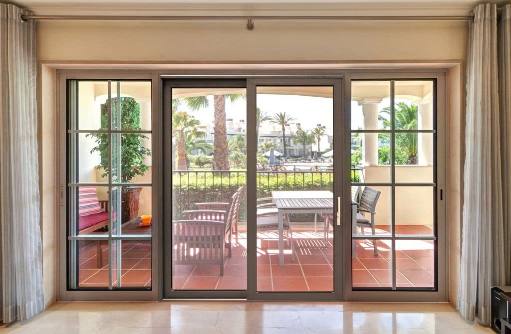 Внешний вид зависит и от типа конструкции. Традиционные французские двери с двумя распашными створками – лаконичный и удачный вариант для загородных домов, где такой проход ведет на просторную террасу или патио. Для городских квартир подойдут более эргономичные варианты: раздвижные или складные.