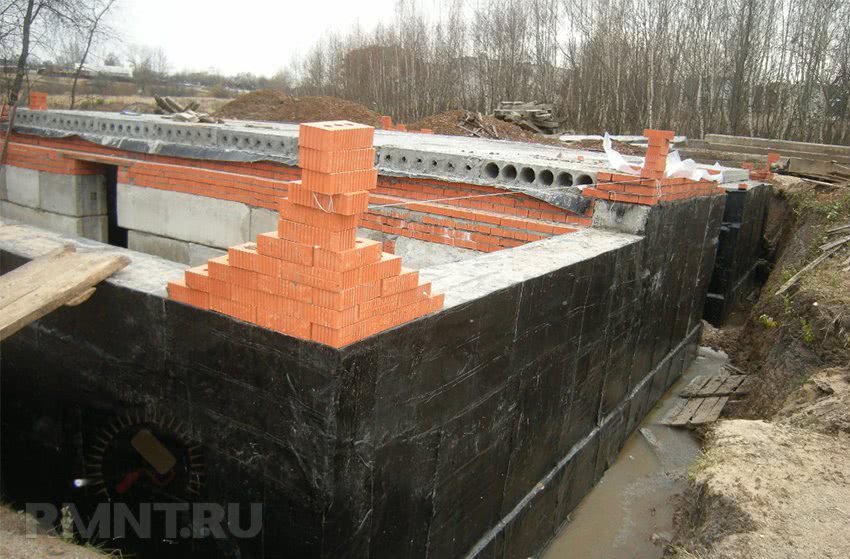 Гидроизоляция непосредственно фундамента нужна в двух целях: предотвращение проникновения влаги в конструкцию дома из фундамента (делается на горизонтальной поверхности фундамента) и предотвращение проникновения влаги в фундамент из почвы и окружающей среды, чтобы бетон не разрушился при замерзании этой влаги. Поговорим о второй.