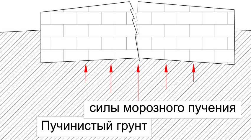 - Высокая вероятность образования трещин, если дом выполнен из кирпича или камня.