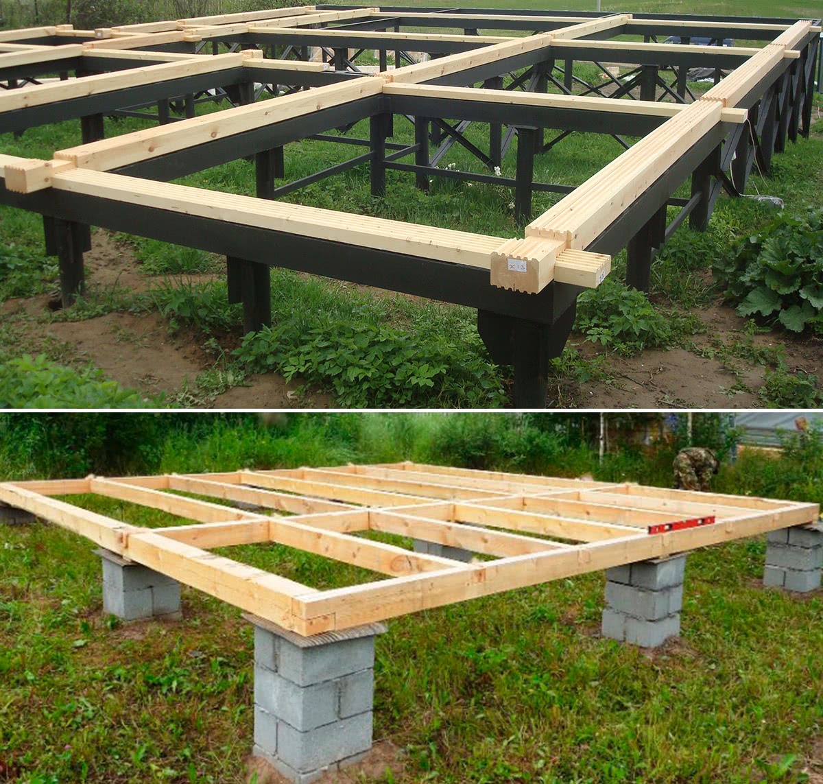 Столбчатые фундаменты бывают монолитные и сборные. Как и свайные, их обвязывают ростверком из бруса или двутавра. Такие основания не закладывают под дома на пучинистых или подвижных почвах.