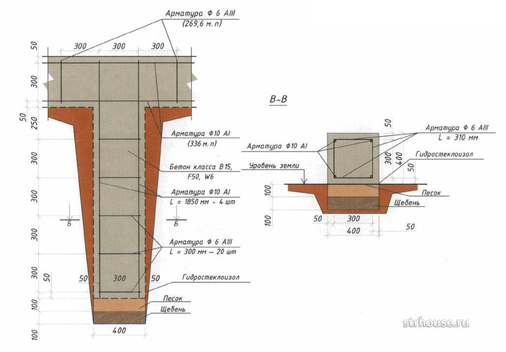 Мелкозаглубленный и заглубленный ленточные фундаменты.
