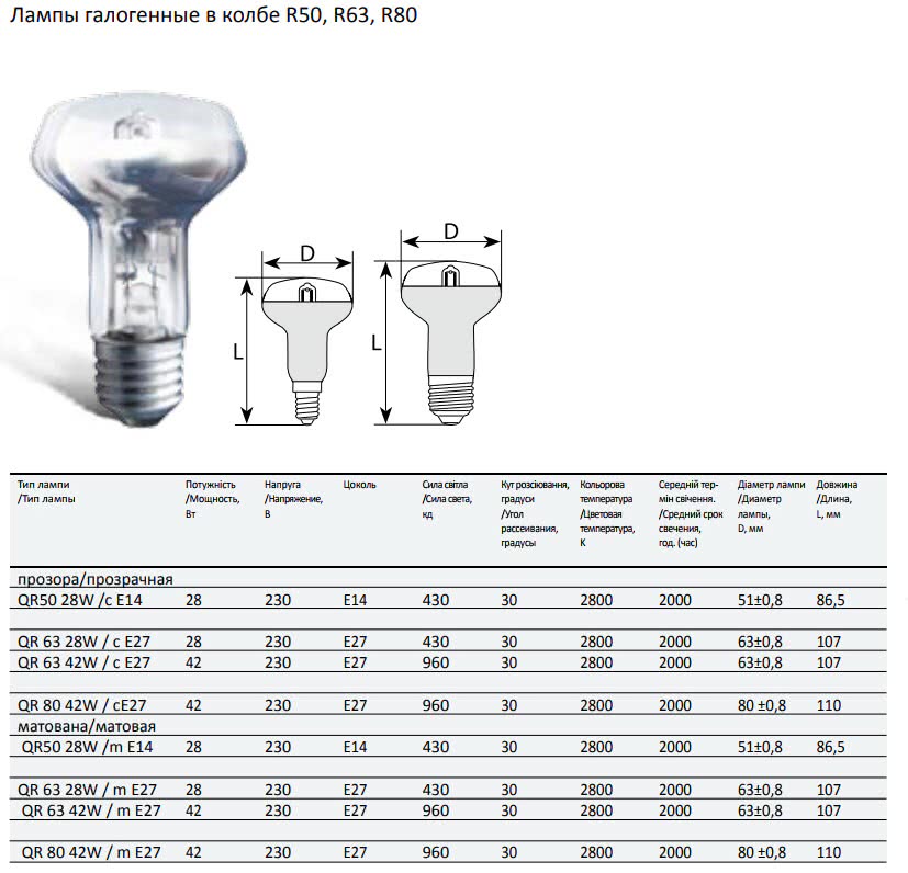 Когда химические вещества в колбе испаряются, частицы вольфрама возвращаются в спираль, увеличивая температуру нагрева. Это дает интенсивность свечения и высокие показатели цветопередачи. Стекло колбы бывает матовым или прозрачным, давая приглушенный или более яркий свет. Сегодня выпускаются лампы разной мощности, включая низковольтные под напряжение 12 В и 24 В. Высоковольтные лампочки работают от однофазной сети напрямую.