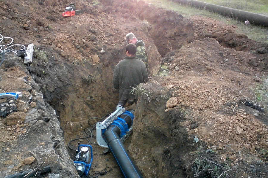 - Подготовка трассы (земляные работы);