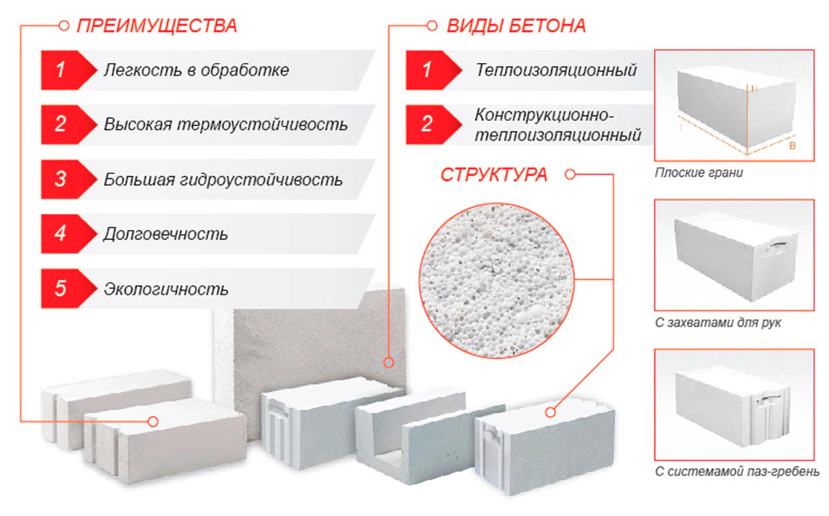 У него низкий показатель теплопроводности и невысокое содержание влажности внутри изделия. Неавтоклавные элементы обычно используют, если нужно: