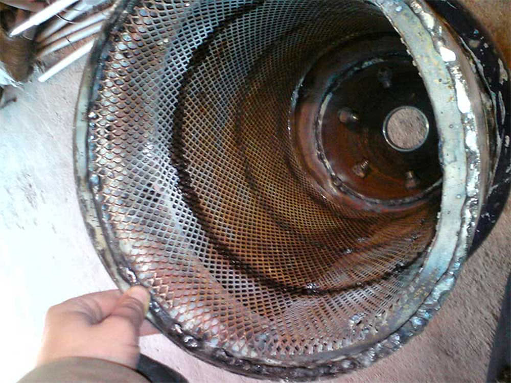 Крышку с крепежом делают из верхней части баллона или листовой стали. Уплотняют ее с помощью обработанного графитовой пропиткой асбестового шнура. Грубый фильтр делается из старого огнетушителя или соответствующего по длине куска трубы. В нижней части фильтрующего элемента устанавливают конусообразную насадку, через которую будет отгружаться зола. Сверху трубу или огнетушитель накрывают крышкой со встроенным в нее патрубком.