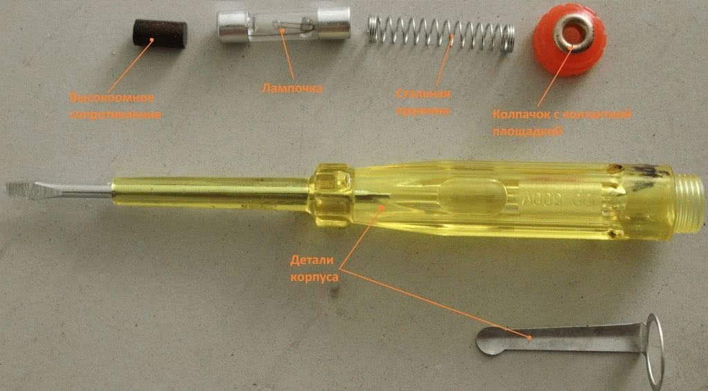Прикосновение жалом такого прибора к фазному проводу замыкает цепь тока. Это сопровождается загоранием контрольной лампы или светодиода. Встроенный резистор ограничивает силу тока до безопасного уровня.