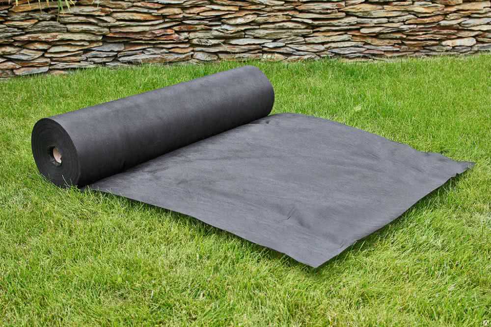 - 60. Уложенный на землю материал пропускает воду, но становится преградой для солнечного света. При его наличии прекращается развитие сорняков, что особенно актуально для сельского хозяйства. Может использоваться в качестве фильтра дренажной системы;