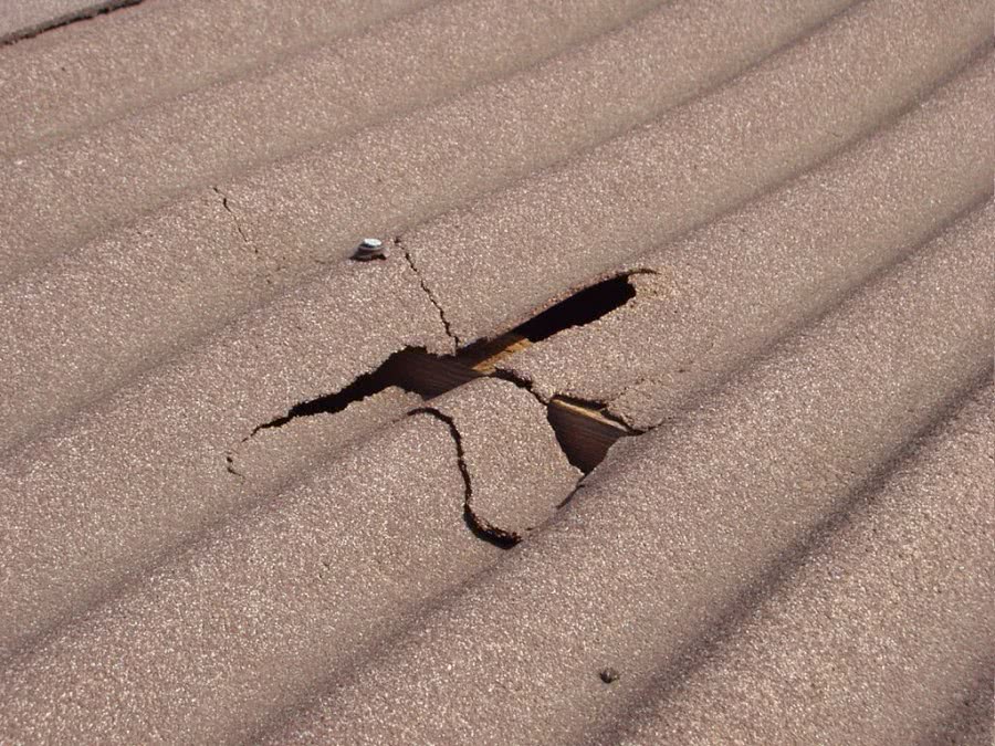 - При неаккуратном обращении или чрезмерной нагрузке шифер может треснуть или отломиться.
