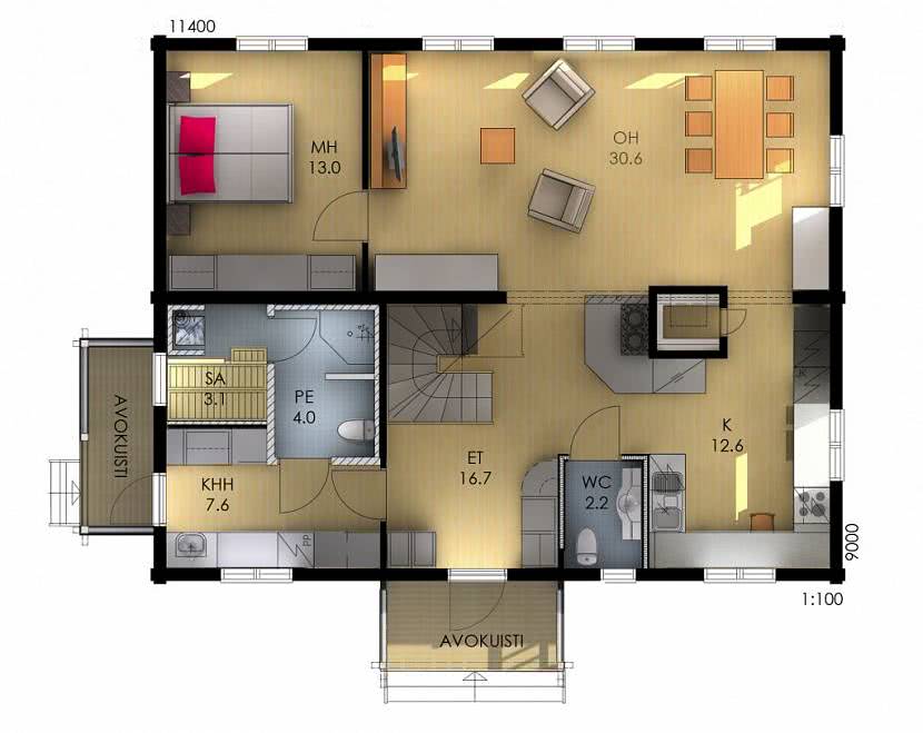 На первом этаже надо учитывать наличие всех вспомогательных конструкций и помещений – их расположение будет очень важно не только для обеспечения функциональной пригодности дома, но и для комфортного перемещения жильцов.