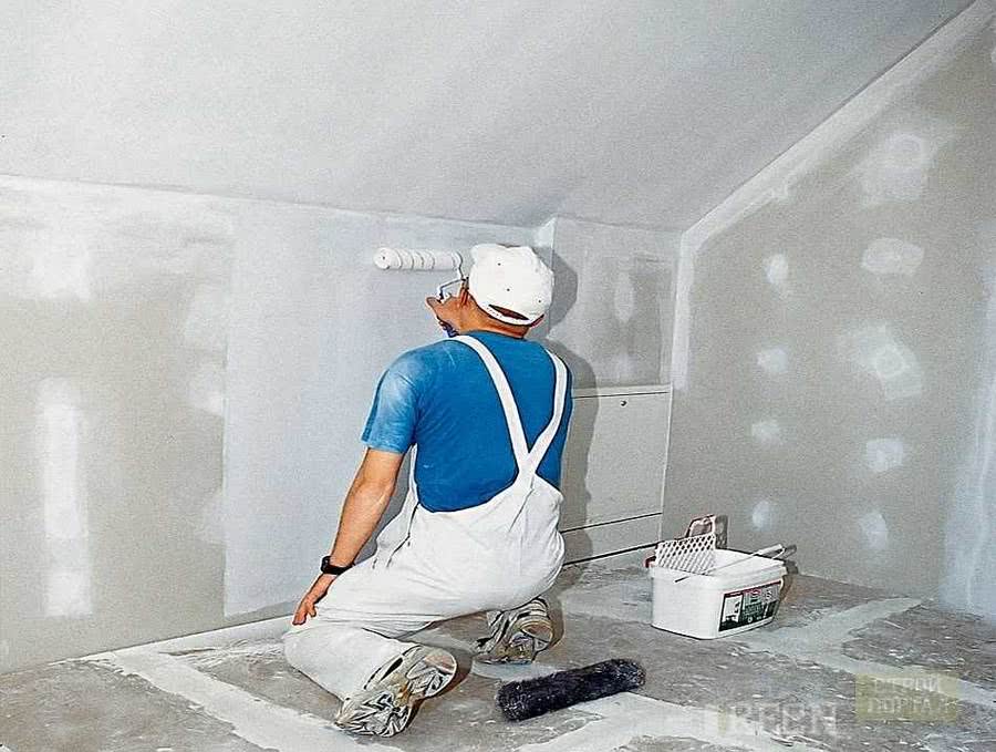 Гипсокартон грунтуют как перед шпатлеванием, так и перед покраской.