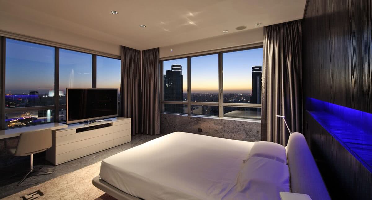 Помимо этого, такой интерьер должен быть оборудован новейшими системами климат-контроля, ароматизации и звука. В общем, все для комфортного отдыха любителей инновационных технологий.