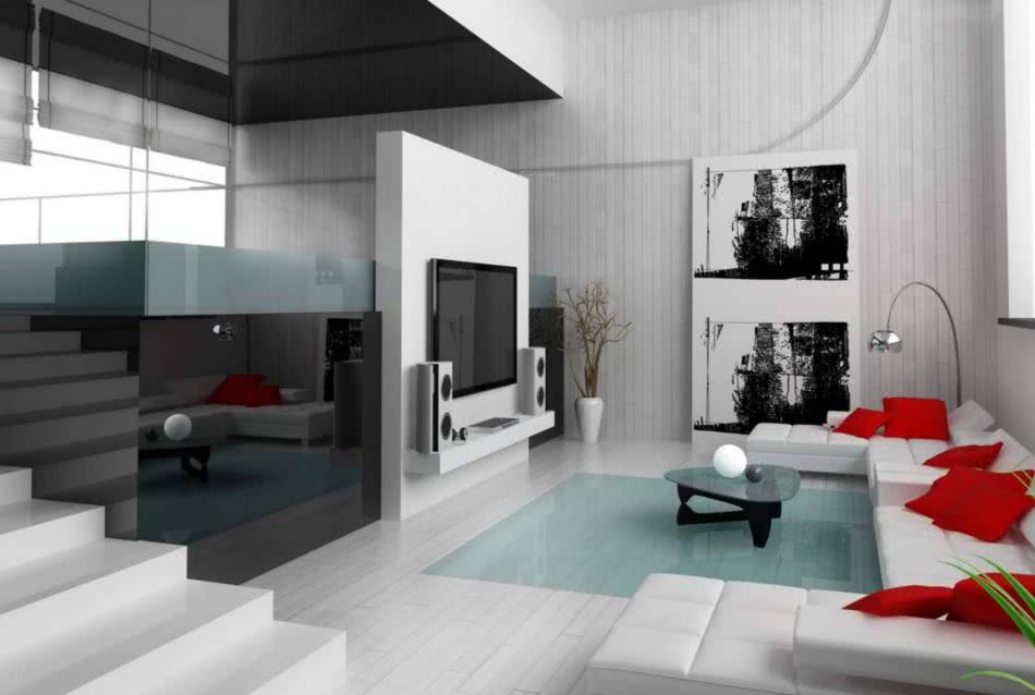 Цветовая гамма хай-тека и минимализма строгая. Все оттенки чистые и простые: черный, белый и серый. Возможны акценты в виде красного. Как правило, такими алыми пятнами выступает мебель. Во многих проектах, сделанных в этих стилях, можно увидеть красный диван или кресло насыщенного вишневого оттенка.