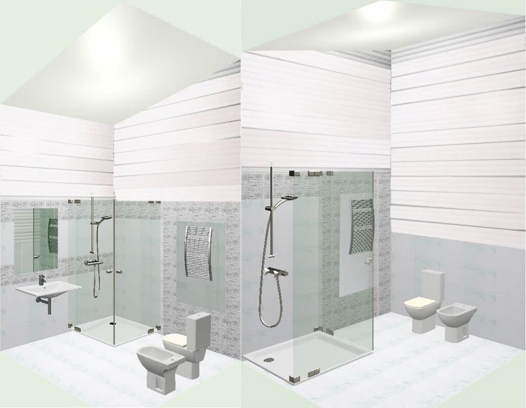 На примере рабочего листа помещения санузла показаны развертки стен с раскладкой плитки, осевые привязки сантехнических приборов на плане и развертках, привязка вывода розеток.