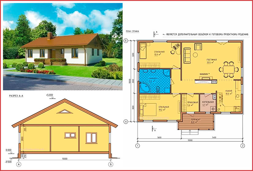 - Дом на один этаж без межэтажных перекрытий, лестниц и большого количества окон.