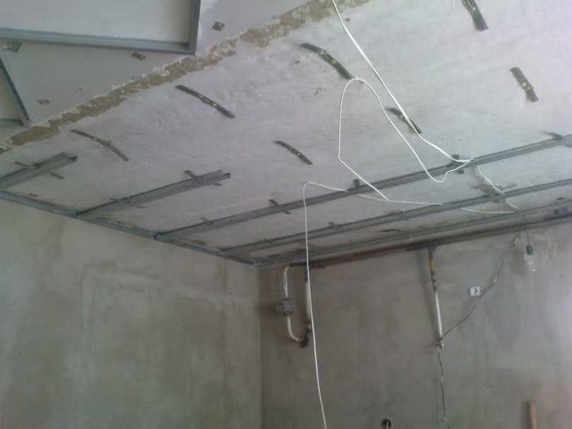 Подвесные потолки представляют из себя дерево или гипсокартон, подшитый к профилю
