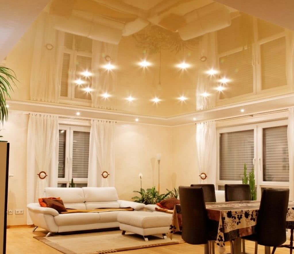 Один из самых популярных вариантов потолочного покрытия. Можно комбинировать с другими разновидностями подвесных потолков. За натяжным покрытием легко ухаживать. Нет необходимости в использовании специализированных моющих средств. Потолок может выдержать несколько десятков литров воды.