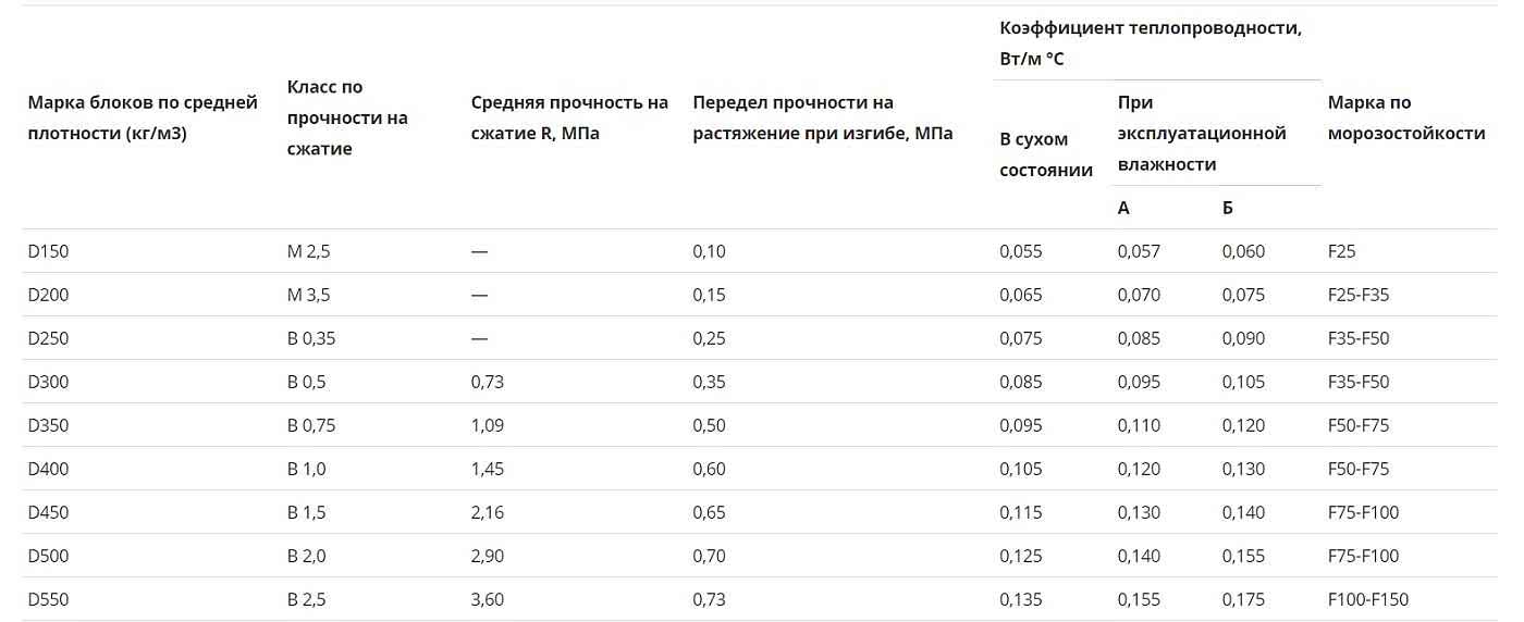 Марки D500-D900 — конструкционно-теплоизоляционные (прочность 13кг/см³).
