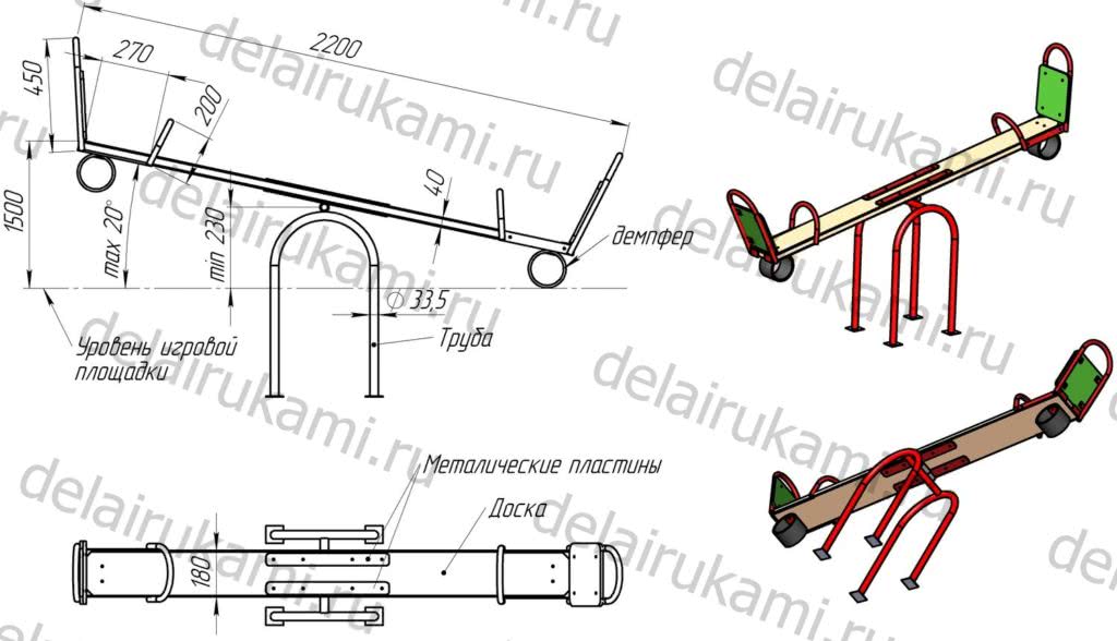Для изготовления обычных качелей-балансира приняты следующие размеры: