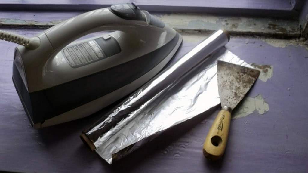 Из подручных тепловых приборов иногда используют утюг. Для этого на стену нужно приклеить кусок фольги и прогладить его утюгом. Затем следует быстро удалить фольгу и приступить к снятию размягченного слоя краски.
