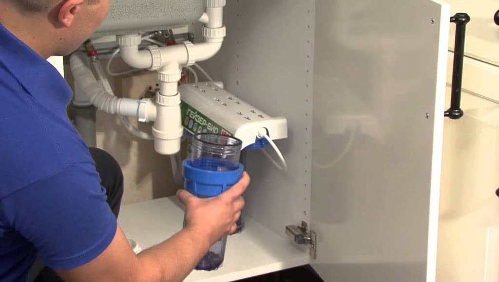 Перед обновлением фильтров с многоступенчатой очисткой также требуется сначала перекрыть подачу воды, сбросить остаток давления в трубе и подготовить емкость для старых элементов.