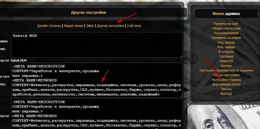 Теперь можешь поменять стандартную картинку фона «доллары» на свою, предварительно переименовав её в «s5_background1.jpg». Можно так же поменять картинки слайдера (меняющиеся картинки на главной странице сайта), они находятся по адресу «/images/slider», их размер 913 x 330 пикселей. Учитывай его при поиске и замене на свои картинки, пусть будет чуть меньше, чем вылезает за края.