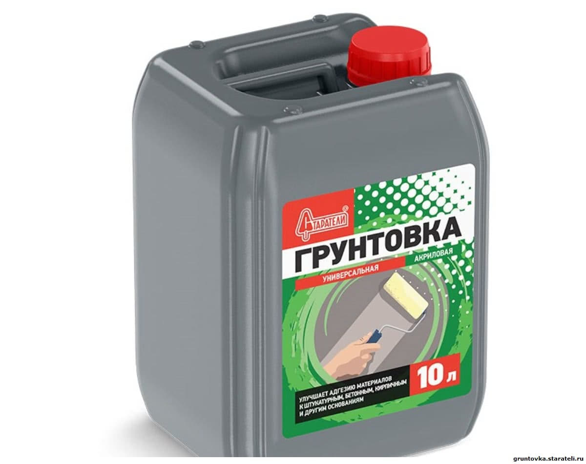 Среди наиболее популярных средств – акриловая грунтовка. У нее хорошая проникающая способность и универсальность, она может наноситься на кирпичную, бетонную основу или листы гипсокартона.