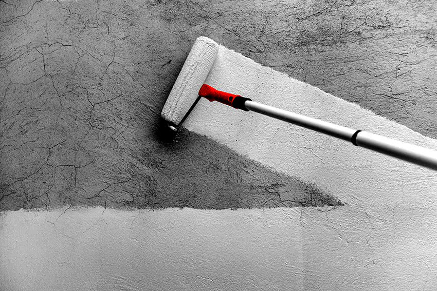 - Начинать следует с углов, работая узкой кистью, а затем валиком, постепенно покрывая всю площадь.