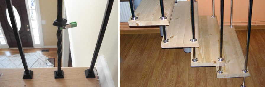 Примерно так выглядит стандартный крепеж для установки металлических балясин сборных перил