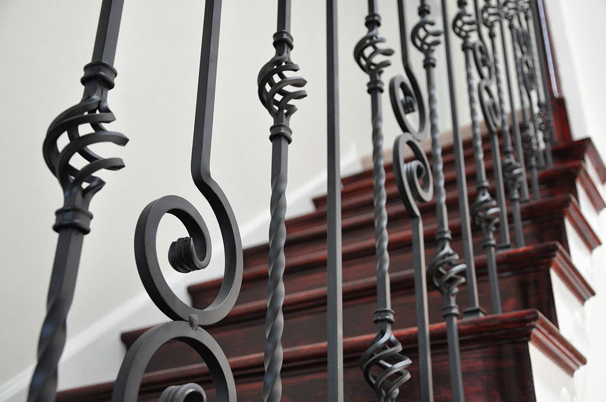 Кованые столбики необходимо прочно крепить к основным несущим элементам лестницы, используя специальные крепежи для балясин. Инструкция прилагается к покупке. Рекомендуемая высота опоры та же – 80-100 см.