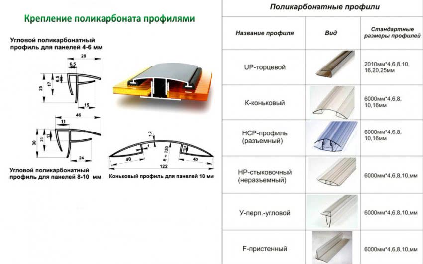Для крепления поликарбоната используют различные типы металлических профилей: