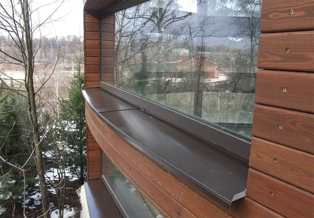 Если есть необходимость сэкономить, сделать отливы для фигурных эркерных окон, можно из обычных оцинкованных отливов с полимерным покрытием. В этом случае их нарезают на куски, при помощи которых можно создать нужный изгиб.